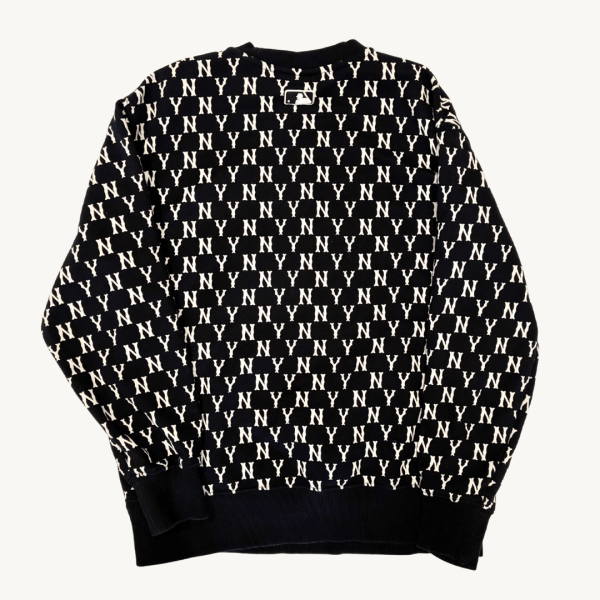 Poleron de cuello redondo de los MLB en color negro con diseño de monograma integral en contraste crema. Presenta el emblemático logo «NY» bordado en el pecho y un acabado premium ideal para un estilo