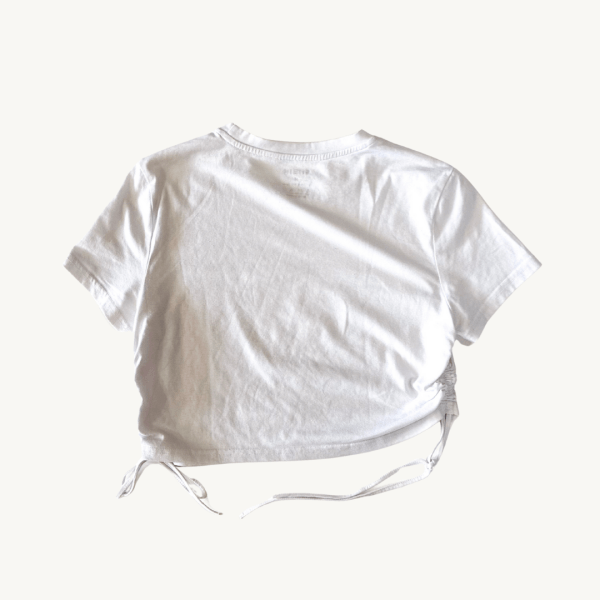 Eleva tu estilo básico con este crop top blanco. Su diseño destaca por los cordones laterales que te permiten ajustar el fruncido y el largo de la prenda a tu medida. Confeccionada en algodón suave.