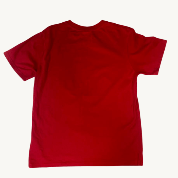 Clásica polera de manga corta en color rojo vibrante con el icónico logo de los New York Yankees bordado o estampado en color negro en el lado izquierdo del pecho.