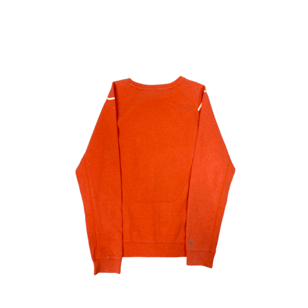 Color naranja brillante o neón jaspeado. Logo Fila en el pecho. Líneas reflectantes o blancas en los hombros. Tejido de alto rendimiento. Perfecta para entrenar o estilo athleisure.