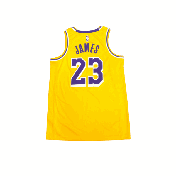 Camiseta amarilla de Los Angeles Lakers con el dorsal de LeBron James diseño clásico de la NBA ideal para fanáticos del básquet estilo icónico y auténtico
