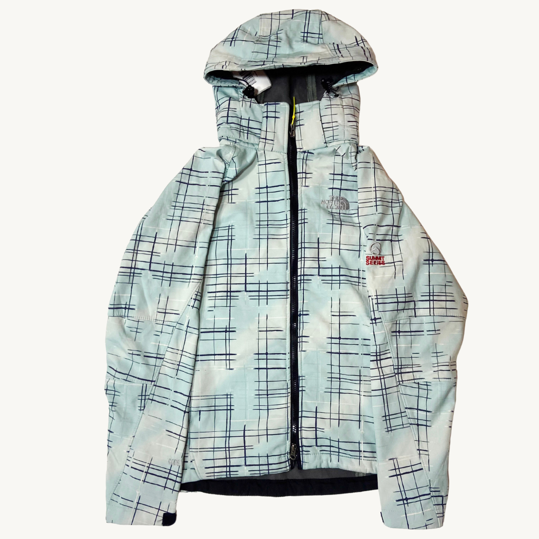 Lleva la protección técnica a otro nivel con esta chaqueta de The North Face. Diseñada en un vibrante color celeste aqua con un patrón de cuadrícula negra de estilo vanguardista, esta prenda es ideal para actividades al aire libre o un look urbano distintivo.