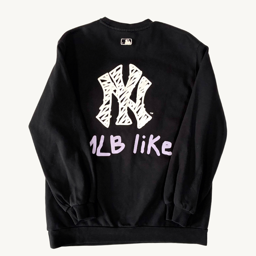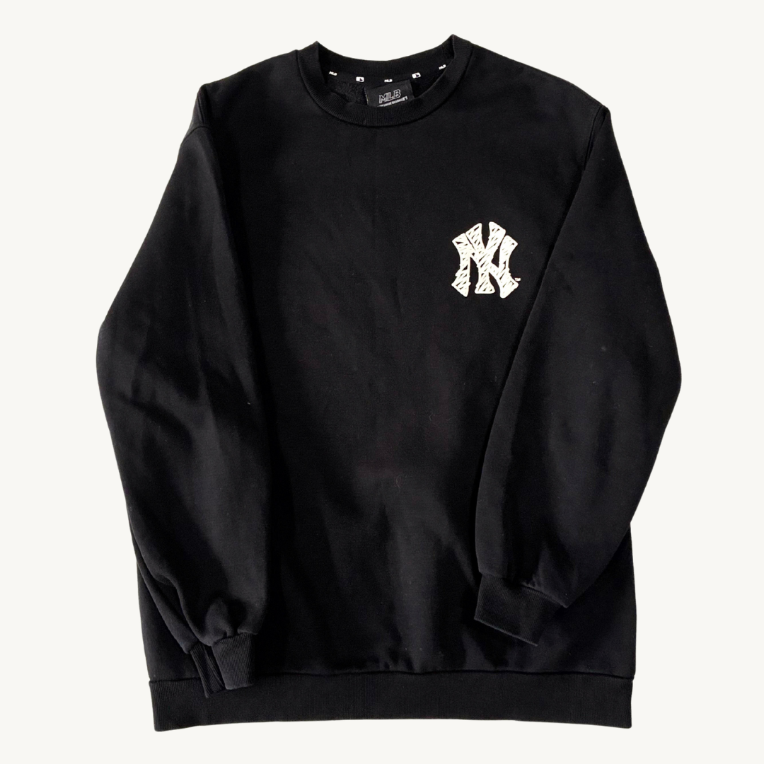 Polerón de cuello redondo New York Yankees con diseño artístico Prenda casual de algodón en color negro, destacando el logotipo de los Yankees con un acabado estilo dibujo a mano.