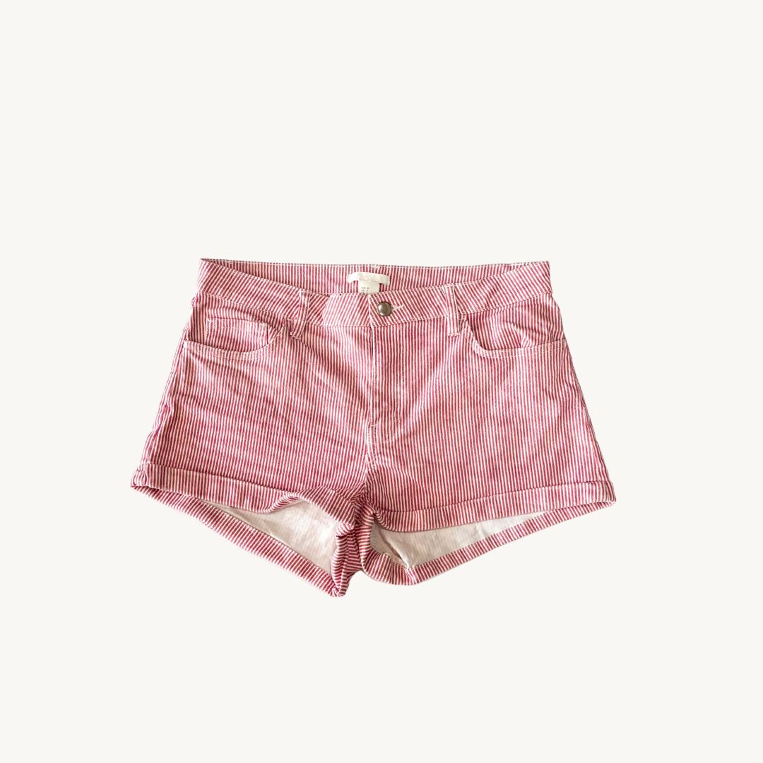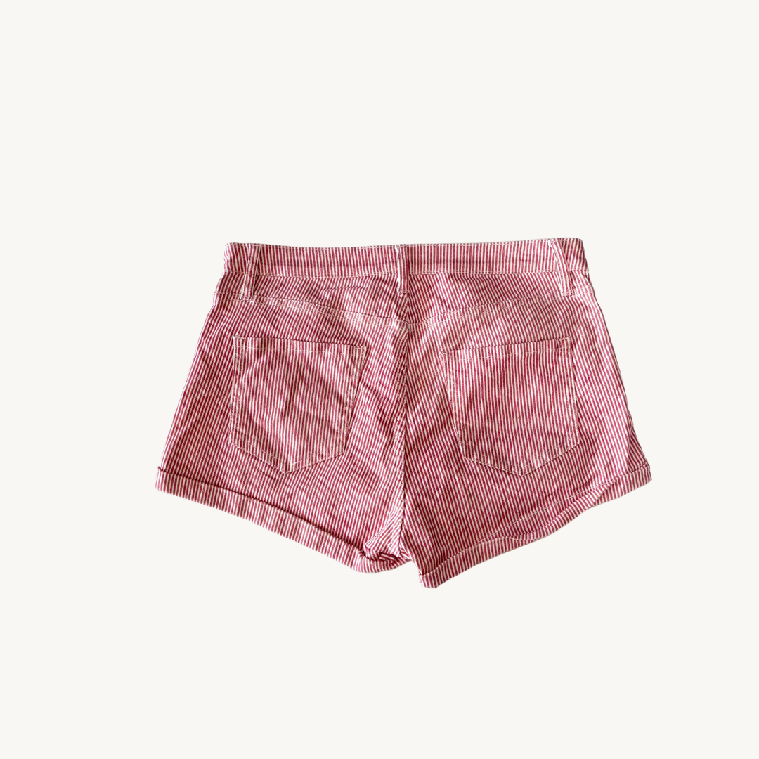 Suma frescura a tus días de sol con este short de H&M. Con un clásico diseño de rayas verticales en rojo y blanco, esta prenda destaca por su calce cómodo y juvenil.